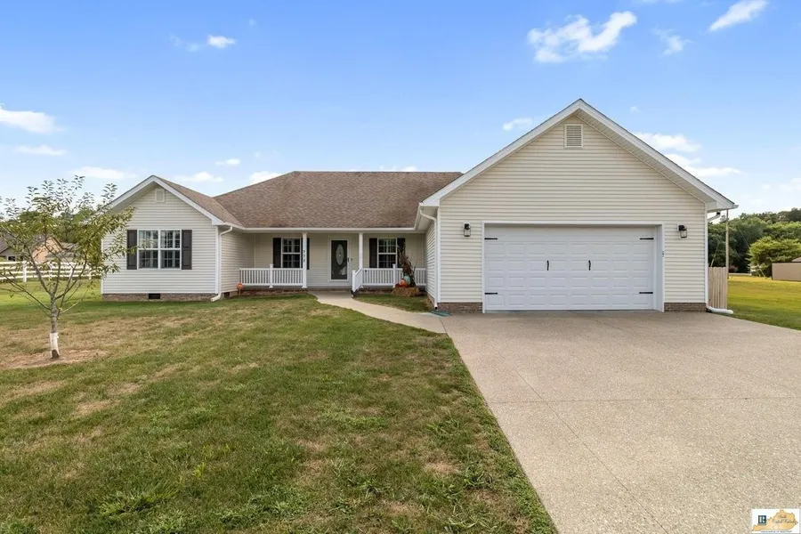 Home on a double lot that looks brand new! This well-kept home sits just outside the Columbia city limits in a quiet, well-established neighborhood and offers comfort, style, and space all on one level. Built in 2017, the home has been meticulously maintained and recently refreshed, making it truly move-in ready. Inside, the open-concept floor plan with vaulted ceilings creates a bright, inviting atmosphere. The kitchen has been updated with quartz countertops and crisp white cabinetry, complemented by modern appliances. Hardwood and tile flooring run throughout, while custom plantation shutters add timeless charm and energy efficiency. The split-bedroom design provides a large primary suite on one side and two additional bedrooms with a full bath on the other, giving just the right amount of separation. Curb appeal abounds with a manicured Bluegrass lawn, concrete driveway, and pristine...