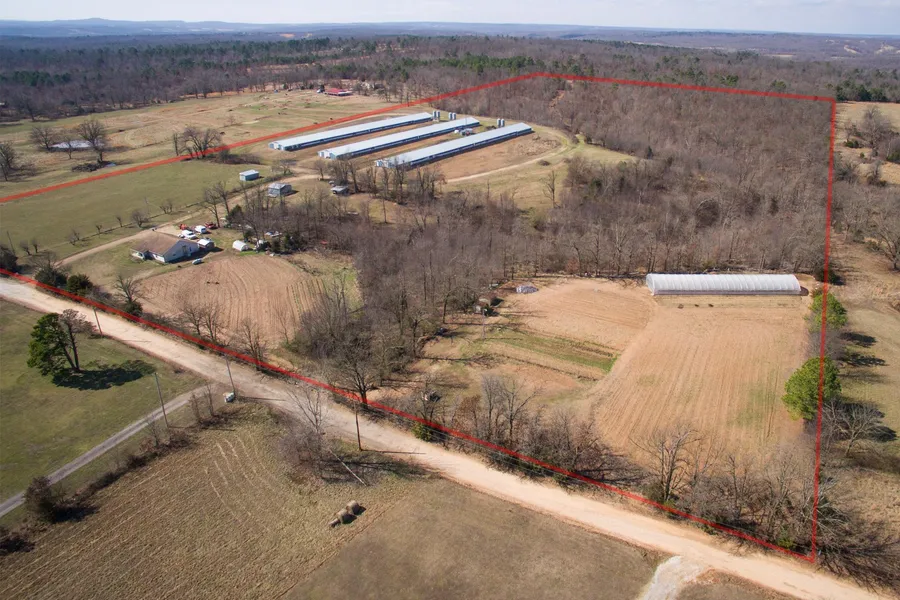 Nice eastern Oklahoma farm needs a new owner! Barn modifications for Crystal Lake Farms free range broiler were partially completed but no contract for that company is available at this time. 3 40x400 barns built in 1997 were in operation for Tyson in 2015. Natural gas is available. Farm has some tillable soil and the family has sold more than $48,000 gross in produce and crops from the gardens in the past 3 years. Come see!