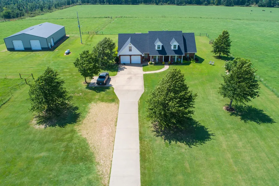 This alluring home is located out of the city limits on approx 4.5 acres.Spacious interior w/hickory flooring down stairs & oak wood flooring up.Formal dining & 2 living rooms.4 bedrooms-3 up & the Master bed/bath down,4 full baths,walk-in closets,bonus/office room & kids playroom.A 17x33 in-ground pool has a large cement deck surrounding w/a rock fire-pit,along w/the 50x70 shop(water,electric & cedar interior accents)it all adds up to a home for family time & guest entertaining opportunities year-round.