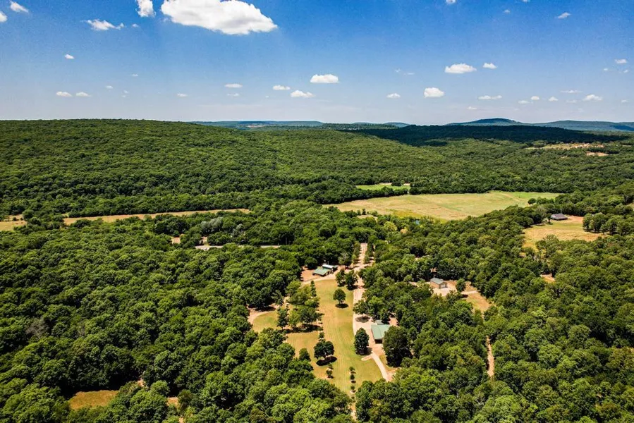 Don't miss out on your chance to own this stunning Adair County hunter's paradise known as the 6x6 Ranch. Located just south of Stilwell, Oklahoma, the 640 +/- acre 6x6 Ranch is truly a turnkey hunting ranch that needs no improvements. From the moment you pull up to the gate, you will appreciate the level of stewardship, attention to detail, and meticulous maintenance that truly sets the 6x6 Ranch apart. All you have to do is get in your vehicle and drive to the ranch to enjoy some quality time. The accommodations will allow you to host your company retreat, weddings, family reunions, or just invite your family and friends over to hunt, fish, and relax. Once you arrive, just up the driveway you can park under the log-sided carport at the master cabin, a fully furnished custom-built log-sided 2-story cabin with custom woodwork all throughout the interior. The master cabin features Austrian pine ceilings, with large beams spanning across the entire ceiling, a cozy living area, full kitchen and dining area, 4 bedrooms (3 king beds and 1 queen), 2 baths, central heat and air, laundry room, and a large covered porch. A quick walk away you'll find a fully furnished multi-purpose metal building with an overhead door that features a full kitchen, king bed, and full bath with room for more beds or storage. Just down the hill, you come to another fully furnished 2 bedroom 1 bath log-sided cabin with 1 king, 2 twins, and a covered porch. A short distance from there awaits the beautiful fully furnished ADA-compliant log-sided Warrior Cabin that was built to accommodate Wounded Veterans who love the outdoors. The Warrior Cabin features a queen bed and full bath equipped with wheelchair accommodations throughout, and a covered porch outside. From the Warrior Cabin, the concrete leads you to the outdoor cooking/dining area with a beautiful rock fire pit to gather around the fire to tell hunting stories. From there, follow the concrete on over to the lodge with a large covered porch and overhead doors that open up to the outside beauty and fresh air. Inside the fully furnished lodge, you’ll find beautiful custom woodwork all throughout, including a custom bar made from timber that was harvested on the property, a spacious living and dining area, a commercial kitchen, a large pantry, and 2 full baths. There is also a fully furnished 3 bedroom 1 full bath guest house with 1 king, 1 queen, and full size bunk beds. There are 6 covered RV locations on the property. One includes a 32 foot 5th wheel which will accommodate 6 people, a 27 foot bumper pull that sleeps 5, and 2 small bumper pull campers. Apple, peach, pear, and pecan trees have been planted and are growing in front of the lodge area. All exterior log and wood on all living structures has recently been treated and will last another 5 years before any treatment is necessary.