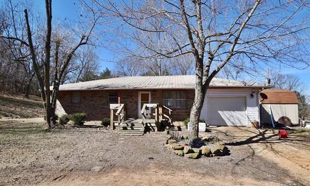 Here is the perfect 3 bed, 2 bath brick home located between Tahlequah & Stilwell. It has appliances, CH/A, storage building, two decks, metal roof, Hwy. frontage, view, 1 car garage, gutters, tile showers & floors, updated kitchen w/stainless appliances.