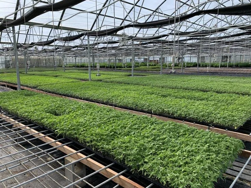 GREENHOUSES: Two Gable Series 7500 greenhouses offer a combined space of 44,000 SF. Included are: advanced misting system, exhaust fans paired with evaporative cooling systems for optimal airflow and temperature control. Hired Hand Heaters and HAF fans provide consistent warmth. One greenhouse is equipped with radiant heating tables