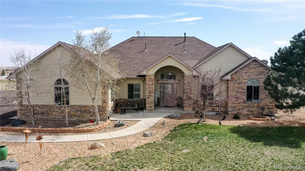 Well Cared for Open and bright ranch style home with 5 bedrooms and 4 baths, Vaulted ceilings, Stainless steel appliances, Solid surface counters and Beautiful Ceramic Floors, Main floor study, Dining room, Master suite with 5 piece bath and built-in vanity, Full basement that was professionally finished and permitted. Game room / theater room currently being used as a 6th bedroom. *30 minutes to Denver, 2.75 acres, RV parking, horses property with barn and 2 stalls and large arena fully fenced with white vinyl . HUGE 25x30 detached garage / shopThis home is a must see!