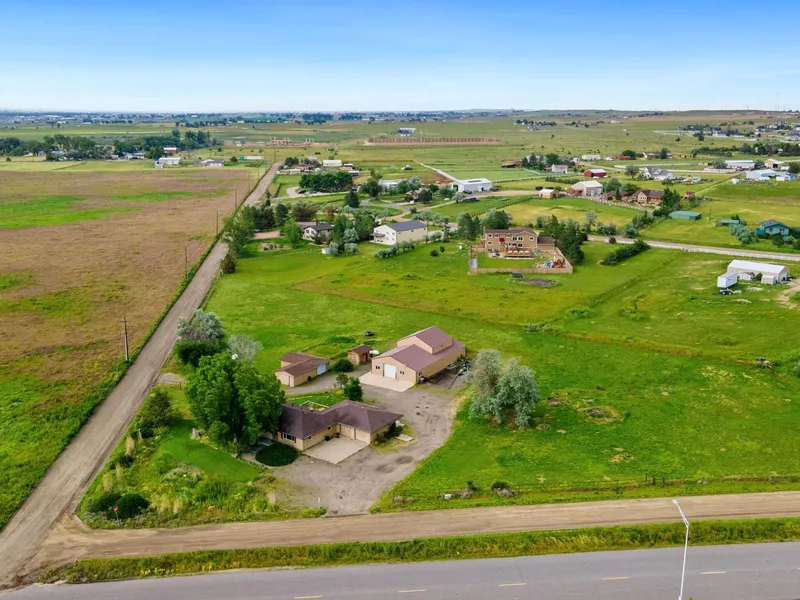 Fantastic opportunity to own this Ranch home with incredible mountain views on 3.44 acres, close to Brighton, and easy assess to Denver, DIA and more! Dream heated shop with water is 35 X 69 2520 SF, has a bathroom (not fully hooked up), heat forced air, large 30 x 28 (855SF) loft and 10 x 10 door. The home features 4 bedrooms, 2 baths, a study office in the primary suite, a walk-in closet, and a bath. The large kitchen has double ovens and hardwood floors; the home has a large 2-car attached garage and a beautiful deck off the back. The property also features a second sizeable outbuilding/2 car detached garage that is 879SF. Bay one is 30 x 17 and bay 2 is 16 x 21 with another 120SF shed. Possibilities are endless on this property with NO HOA and NO Metro Tax. The home is being sold AS IS.