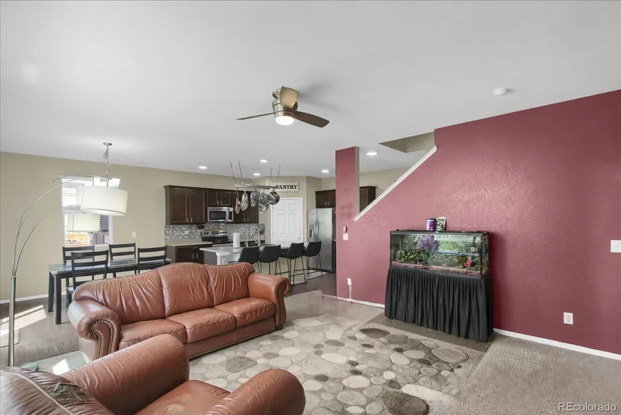 Welcome to your next home! Open concept 5 bed and 3 bath home on a corner lot with lots of space, tons of closets, and a backyard oasis!! French door office off of the entry as you make your way to the open kitchen, dining, and living room area featuring a large eat-at kitchen island and walk in pantry. From the spacious living room you'll find the main floor bedroom and full bathroom which could be great for another office area or in-laws space. Up the stairs you'll find a roomy loft area great for a kids play area, office space, or fitness zone. Wait to behold the amazing Master Suite with an incredible sitting area in addition to the huge bedroom, bathroom, and walk-in closet! 3 more perfect sized bedrooms and another full bathroom are to be found as well upstairs complete with closets galore everywhere you turn. The laundry room is conveniently located on the upper floor. When it's time to enjoy some outdoor time step out to your true backyard oasis featuring a large sitting area, deluxe water feature with Koi pond, maintenance -free artificial grass lawn area, built-in grilling station, bountiful garden boxes, and firepit area! What more could you ask for!! 2 car garage and a storage shed complete the features of this incredible home. A quiet neighborhood with great walking and biking trails make this an ideal location. Come see this home today!