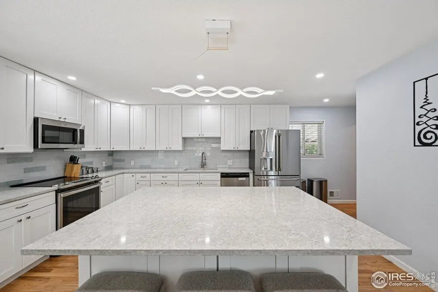 Bring out your inner chef in the stunning kitchen, complete with two ovens and one of the largest islands you'll find-perfect for hosting parties or holiday gatherings. Just wait until you see the private, oversized primary suite tucked behind a hidden door, featuring a spa-like bathroom with a walk-in shower and 14 shower heads (yes, really). This Northglenn gem has been fully renovated and is packed with upgrades: paid-off solar panels, brand-new windows, a new furnace, and a new A/C system make this home as efficient as it is beautiful. Out back, enjoy the in-ground trampoline and spacious yard, ready for your finishing touches. And with three elementary schools just steps away, the location can't be beat-convenience, comfort, and style all in one!