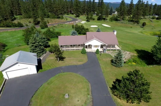 Lodge inspired golf front home on the 15th Fairway w/breathtaking views in every direction. Walk into the spacious great room w/dramatic vaulted ceilings, wood beams & large view windows. The over sized dining room which includes the 16' table and chairs can fit a huge crowd. This beautiful home is set up perfectly for family and friends with 3 master bedrooms each with its own full bath & private entry. Enjoy all the amenities: golf, fishing, swimming, tennis, pickle ball, & only 15 min to Brundage. Small creek runs through the property, covered decks and paved circular driveway with plenty of room for your guests. One of the best locations on the golf course on quite cul-de-sac. Community also has private fishing pond.