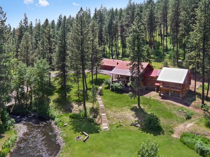 Need an escape? Retreat to this private riverfront mountain sanctuary nestled in the backcountry of Adams County. This property consists of 80 acres contiguous to Bureau of Land Management land. The beautiful natural setting is enhanced with a stunning custom log home that overlooks the Weiser River.
