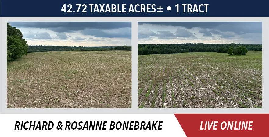 The Bonebrake farm will be sold on a price per acre basis, based on taxable acres.