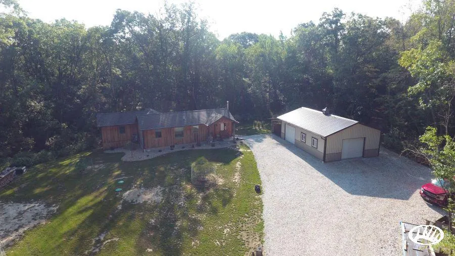 Located on the eastern side of Adams County is this ultimate outdoor and hunting getaway. This property has a newly constructed 1,106 sq. ft. home and building built-in 2017. Pull in the driveway and your curiosity will wonder where the rock road leads. Head around the corner and up the hill where you will find a very unique home that spared no expense when building and attention to detail is second to none. Walk in the custom-built front door where you will find New Hampshire white pine plank flooring with several planks upwards of 20” wide. The main living room has a view in all directions with wildlife frequenting the yard on a daily basis. The kitchen is located next to the living room along with a small dining room. Down the hall, you will find a bathroom and 2 or 3 bedrooms on the north end of the house. There is a basement under the main part of the house, which could be finished...