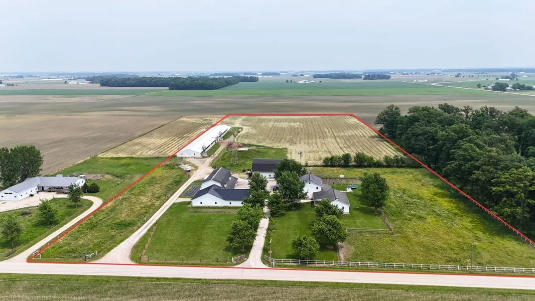 Tract #1 consists of 8+/- acres, 4,800 Sq Ft Home, 36x72 detached Garage, 40x76 Machinery Shed, 40x70 Horse Barn, 50x368 Calf Barn.