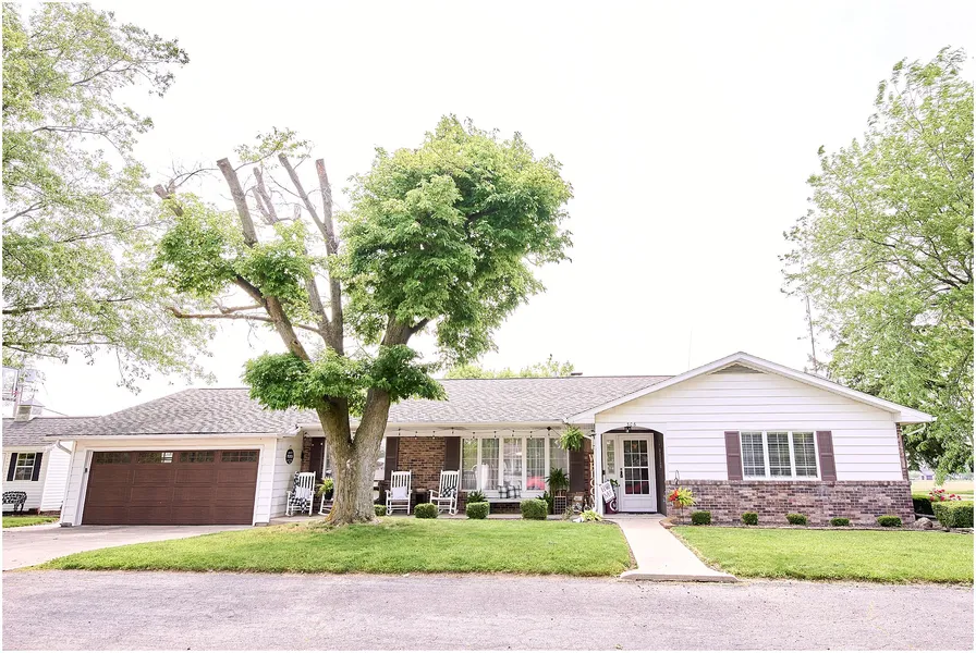Brimming with curb appeal and charm, this lovely sprawling ranch welcomes you home with its inviting presence and thoughtful updates throughout. Step onto the covered front porch , a picture-perfect spot to enjoy your morning coffee or evening breeze. Inside, the formal living room offers a warm and spacious setting for relaxation or gathering, seamlessly connected to a gracious dining area ideal for entertaining. The home’s layout flows effortlessly into a spacious kitchen , complete with a breakfast bar and gas log fireplace —the perfect blend of functionality and cozy ambiance. Just beyond, a sunroom provides a cheerful retreat filled with natural light—ideal for year-round enjoyment, whether used as a reading nook, indoor garden, or extra sitting room. This home features three nicely sized bedrooms and two full bathrooms , offering comfort and convenience for everyone. The partially finished basement adds even more versatility with a den, family room, and play area —perfect for game nights, hobbies, or a quiet escape. Outside, the property continues to impress with a fantastic entertaining patio , a 2-car attached garage , workshop , and a garden shed —a dream setup for hobbyists, gardeners, or weekend warriors. Additional upgrades include a newer roof , fencing , and some newer windows and doors . Whether you're hosting a celebration or enjoying a quiet day at home, this property offers the perfect blend of beauty, space, and functionality. Come and see all the ways this home is ready to welcome you!