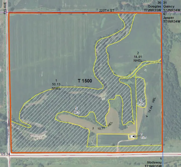 Research Parcel InformationApproximately 3.5 miles West of Corning, Iowa. Farm lays on the Northside corner of Hwy 34 and Fig Ave.
