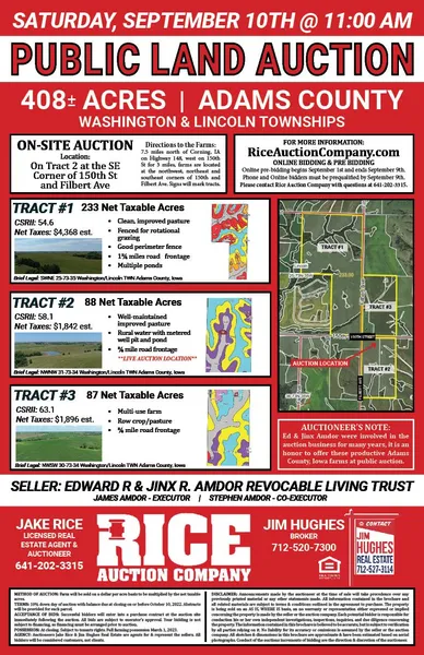 Selling 408 Acres in 3 tracts at Public Land Auction on Saturday, September 10, 2022 at 11:00 a.m.
