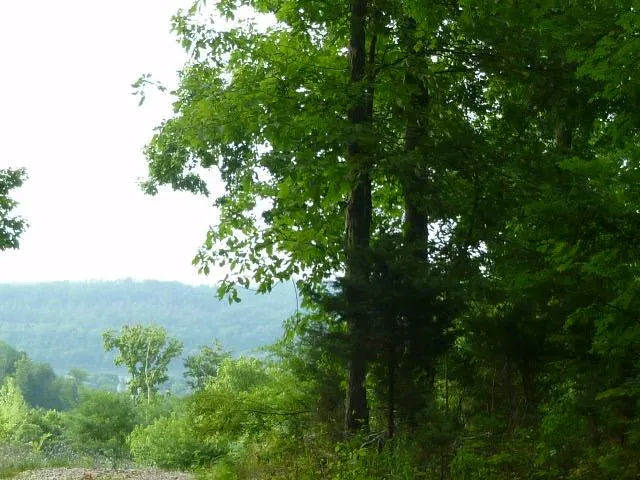 Everything Else Is Downhill. 9.315 acres with a river valley view. Clearing with water tap and electric with convenient site for home, cabin, or camping. Woods and wildlife for hunters, hikers, or hermits.