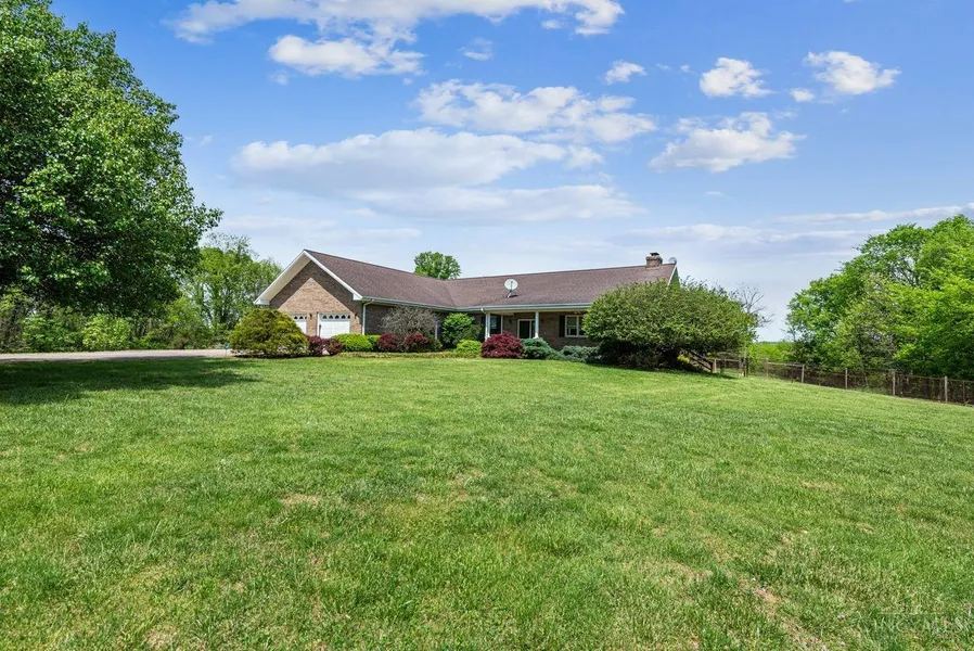 Custom built, one owner, brick ranch sitting on close to 6 acres in a peaceful wooded setting. Spacious open floor plan estimated 2200 sq ft on the 1st level. Combined great room & dining area, oversized stone fireplace as a focal point with wood built in shelves/storage. Walk out to a large, covered deck w/ a beautiful view of nature, pond, fenced area for dog/animals. Separate laundry room, eat in kitchen, island, wood cabinets. The primary bedroom has attached full bath and walk in closet. The lower level is approximately 1800 sq ft of workshop, craft room, and finished center entertainment area w/ full bath. Additional attributes: Central vac, attached two car garage, barn/horse stalls. Note a 2nd parcel of 6.85 acres included. Must see to capture the value and make this your home!