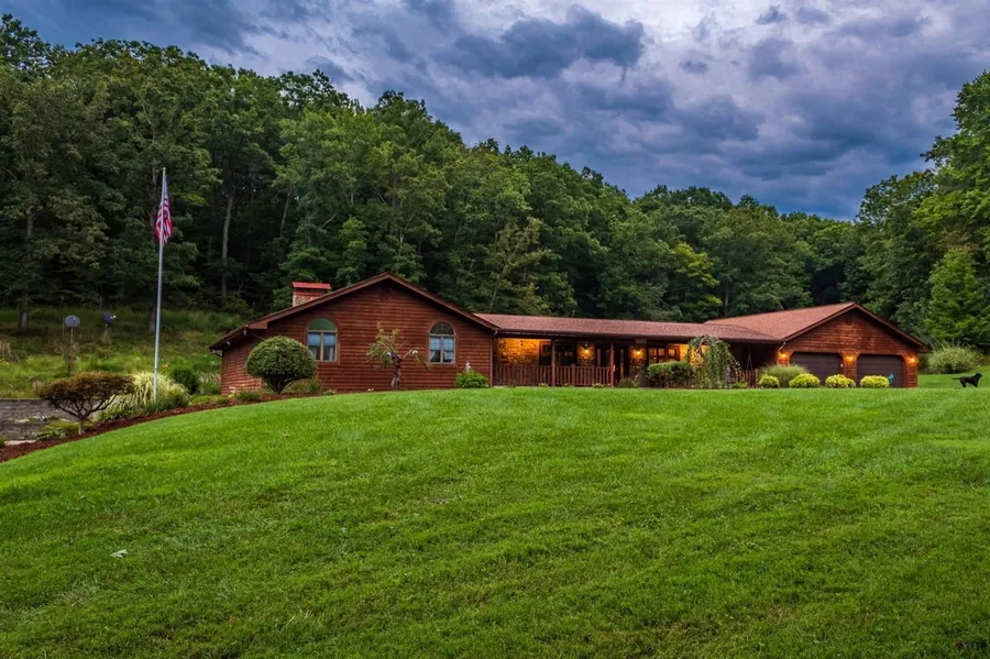 Want a get away? Truly custom built for family and recreation. Located truly in the country. The setting is for nature lovers w/pond woods, fully equipped outside kitchen, fire pit, workshop. Pond surrounded by trees just off the walk outs. Home has 7 bedrooms and 4 full baths, natural woodwork, raised panel doors, vaulted ceilings, primary bedroom w/stone fireplace, efficiency guest room, finished basement w/den, family, rec rooms. Just minutes to 32. Too much to describe. A Must see.