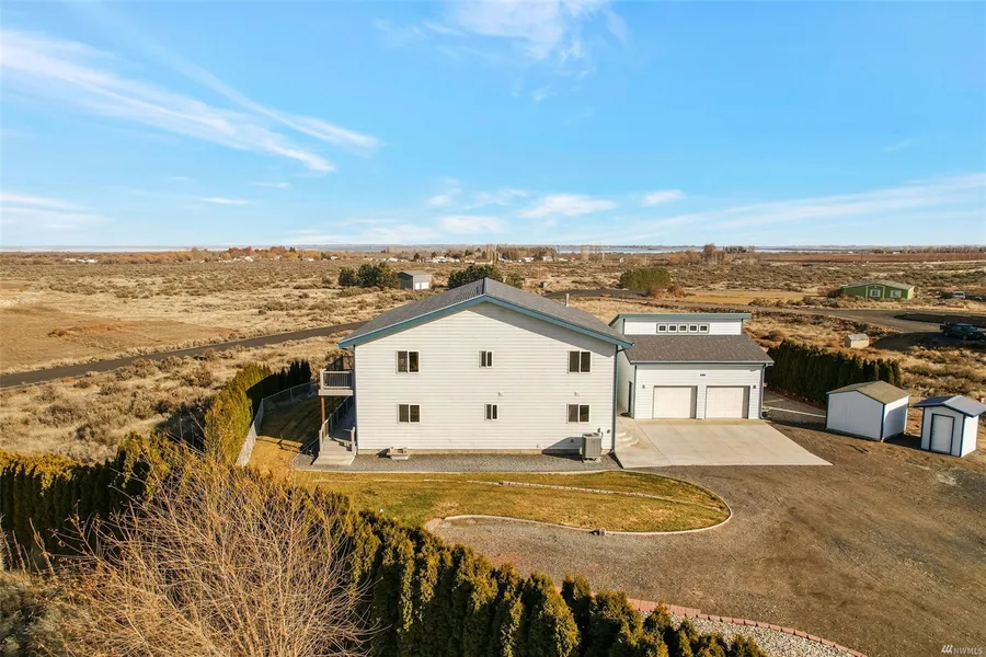 This home will impress with it's huge main living area! Located just down the road from Legacy Golf Coarse and the boat launch of MarDon Reservoir. Main house is currently set up with 2 bedrooms but has a very large area upstairs that could be turned into additional rooms if needed. The detached 2 car garage also has an upstairs loft that is heated and cooled. Has a R.V.spot set up with all services. Nice landscaping with additional sheds for lots of storage. Includes all appliances. Come check this 2.5acre property out today!