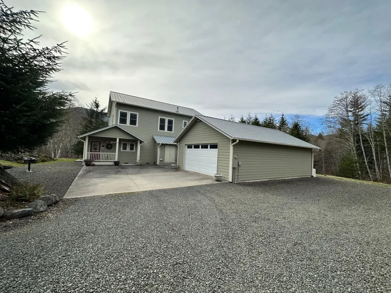 Beautiful 2,610 sq ft home on 21.55 acres with creek frontage and minutes from Quilcene, WA. External features include a large side deck, detached 2-car garage, 30X70ft shop w/ two RV drive-through bays, encapsulated crawl space, and pre-merchantable timber approximately 30 years old spread throughout the parcel. Internal features include a spacious country kitchen with an island and walk-in pantry, wood floors, a gas furnace, a central vacuum system, and a wired/installed backup generator. 20.55 acres remain in DFL classification for lower taxes. With the privacy and seclusion of this beautiful property, you will never want to leave. Additional property features are available upon request. Adjacent parcel for sale by owner MLS#2075096.