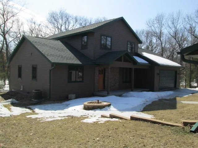 Top of the Line Custom Built Home featuring 2 Main Level BR's and bath, huge upper level MBR with MBath and walk in closet, upper level sitting area overlooking living room stone F.P., quality kitchen cabinets, hardwood floors, walkout to deck, basement mostly finished with room that could be another BR, full bath, family room and plumbed for bar area. 2 Car Att gar. and 30x36 det gar. All on 5 acres across St from Public Hunting, on an ATV Route and just down the road from the Petenwell Lake. Look Now!