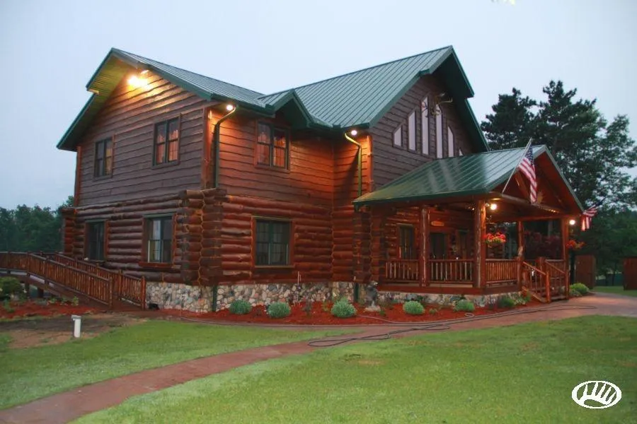 - Contemporary log home overlooking beautiful pond is ideal for a corporate retreat, hunting lodge or an executive home