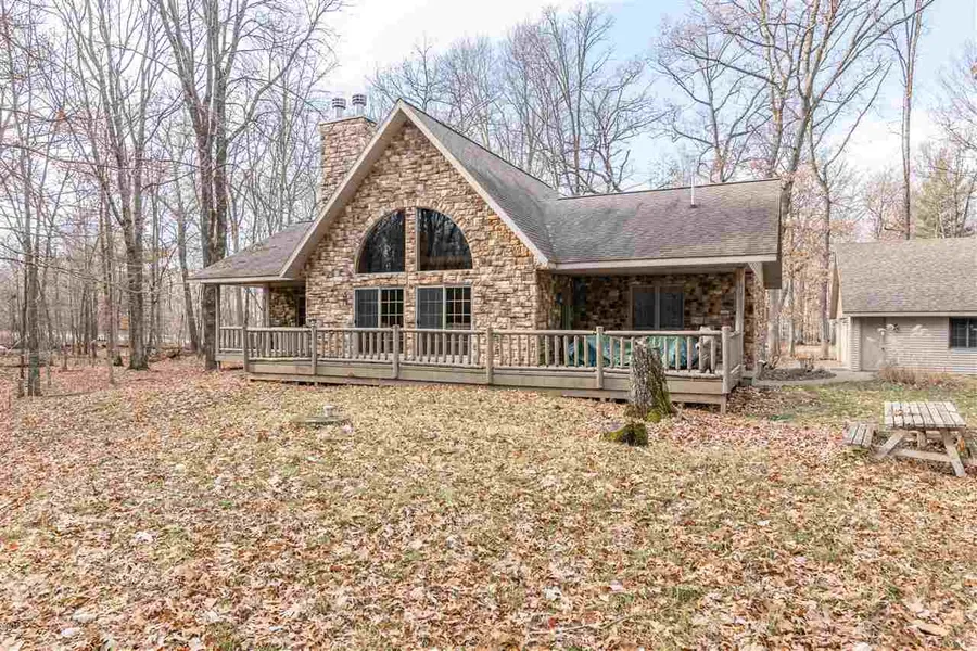 Petenwell Lake Deeded Access with Path To Pier Spot Directly Across the Street! Closer to the piers than most on-water houses! This quintessential up-north getaway is the perfect escape. The quality, custom built, 3,050 sq ft, 4+ bedroom, 3 bath home won't disappoint. It features an open concept Great Room with a floor to ceiling stone fireplace, wood floors, beamed cathedral ceilings, and double sliding doors overlooking the private backyard. Enjoy entertaining in the eat-in kitchen open dining area. There is plenty of room to roam with the large loft and finished lower level that features a family room and versatile game room/rec room. Outside features a private yard, oversized 2.5 car garage, multiple deck areas & more. Walk to the lake or ATV/snowmobile right from your front door. WOW!