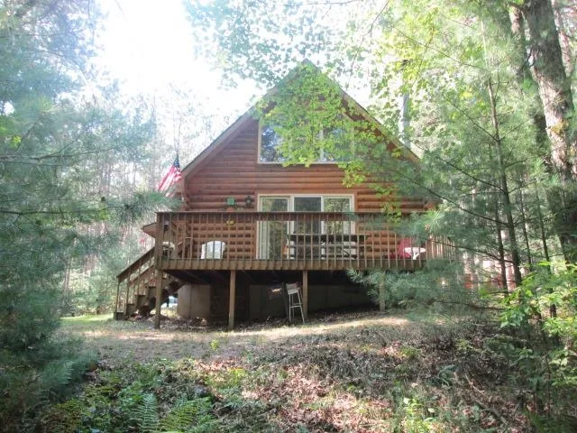 Out in the Country in the whistling pines, you'll find this beautiful log cabin chalet. Nestled on approximately 17.30 acres with a Class A Trout Stream flowing thru the property. Custom built with a stone fireplace, tongue and groove ceilings, large deck to view the wildlife from and a 2 Car Detached Garage. The Campbell, White and Fairbanks Creeks all come together on this nicely wooded parcel. Long driveway thru the planted pine plantation leads you to the secluded cabin. Only 20 minutes to Wisconsin Dells and 15 minutes to Adams. Within minutes to the Castle Rock Lake boat launch and several choices of your favorite golf courses. Area ATV routes and more.