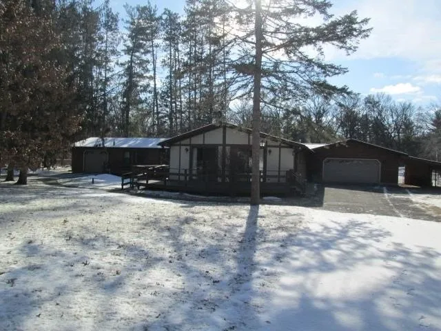 Come One Come All to buy this spectacular 3 BR, 2 Bath Ranch Home. All one level with over 2,000 sqft. Addition years ago was added for separate living quarters. Just a few touches and this could make a great mother in law suite. Terrace Home with open concept LR to kitchen and dining. Walk out doors to wrap around deck. Huge Primary BR with 3 closets. Laundry Rm walkout to att. heated 2 car gar. with lean-to. One car gar. att. on opposite side. Roof Appx. 10 yrs, New gar doors in 2023, New Well in 2021, All flooring replaced from 2021-2023, furnace in 2018 and 2013 (2), water heater in 2021. Blacktop drive, trails cut in, walk to Arkdale Lake and Public Launch, on ATV Trails, 15 minutes to several golf courses and more. Make this your next home and enjoy all the area has to offer.