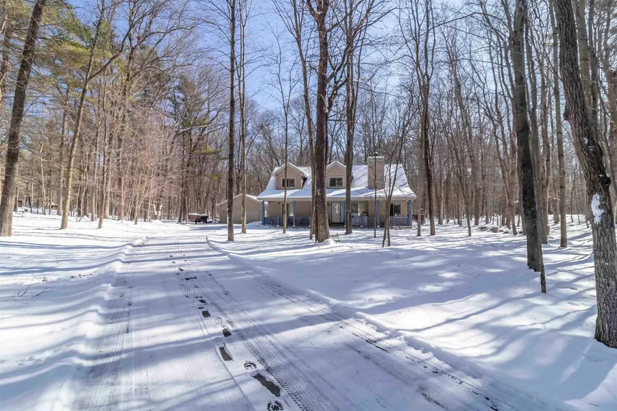 Petenwell Lake Retreat–Deeded Access w/ Walkway to Pier & Lake Across the Street! Escape to the Northwoods w/ this beautifully crafted 3 bedroom, 2 bath, 2,024 sq. ft. home set on a serene 1.73 acre wooded lot. Step inside to a warm and inviting Great Room featuring vaulted ceilings, wood floors, a stone fireplace, & a cozy pellet stove-perfect for chilly evenings. The custom updated kitchen boasts high-end appliances and finishes, making it a dream for any chef. A bright dining area, versatile loft space, & three generously sized bedrooms, including a primary suite, offer comfort & functionality. First-floor laundry adds to the convenience. The unfinished lower level presents a fantastic opportunity for expansion. Outside features a 2.5-car garage, inviting country porch, and large deck.