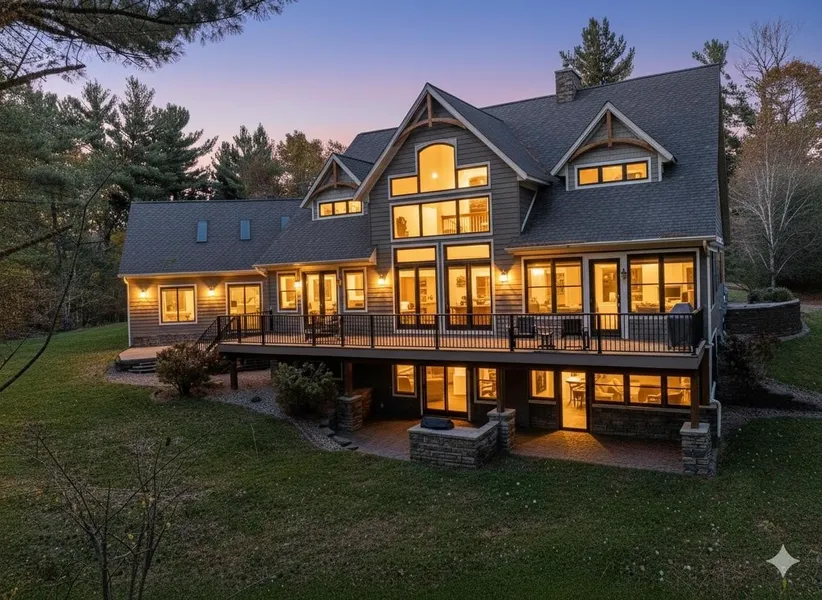 Luxury Castle Rock Lake Retreat - 6BR/4.5BA Discover your ultimate lakefront escape in this almost new, fully furnished home nestled on a wooded double lot w/493' of frontage on Castle Rock Lake, WI's 4th largest. This stunning 6-bedroom, 4.5-bathroom retreat boasts a BRAND NEW ROOF, NEW EAVES, & NEW BUILT-IN OUTDOOR GRILL. Enjoy an indoor heated pool, outdoor paradise w/hot tub, firepit, & screened porch. The lower level features in-floor heating, a rec room w/billiards & wet bar. The chef's kitchen impresses w/custom-crafted ceilings, vaulted beams, & beautiful hickory floors throughout the main level. A luxurious main-floor primary suite offers convenience, a sunroom ideal for relaxation or home office. A spacious 3-wide, 2-deep garage, + extra-deep storage. Truly an exceptional home!