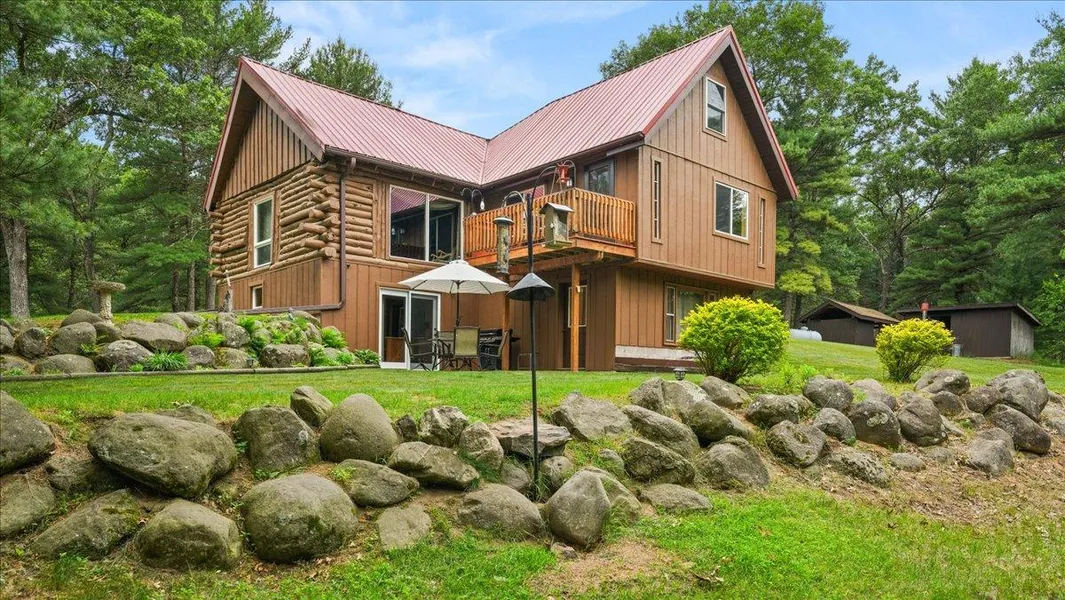 Set on 19.81 acres just 15 minutes north of Wisconsin Dells, this well-cared-for log home blends rustic character with everyday convenience. The 3BR, 1.5BA residence offers 2,093 sq. ft. of living space designed for comfort, updated with major improvements already in place. Surrounded by towering oak and white pine, this home provides year-round privacy and a landscape that invites both quiet living and outdoor recreation.