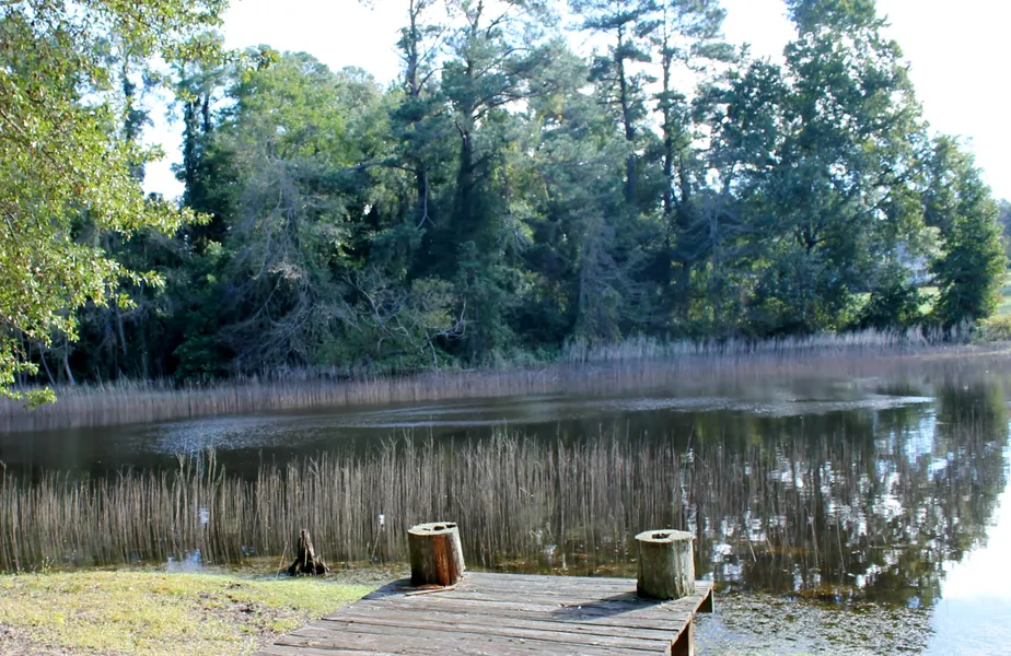 HIDDEN IN PLAIN VIEW - A treasure just within your reach, this home is perched on the bank of a pond so you can almost fish off your porch! The approx. 1705 sq. ft., 3 bdrm/2 bth home has covered porches, deck, open tile patio, and carport. Backyard block house could serve a guesthouse or storage, 730 sq. ft. metal shed and 400 sq. ft. metal carport round out this unique property . . . and the best part it's all part of 12 acres.