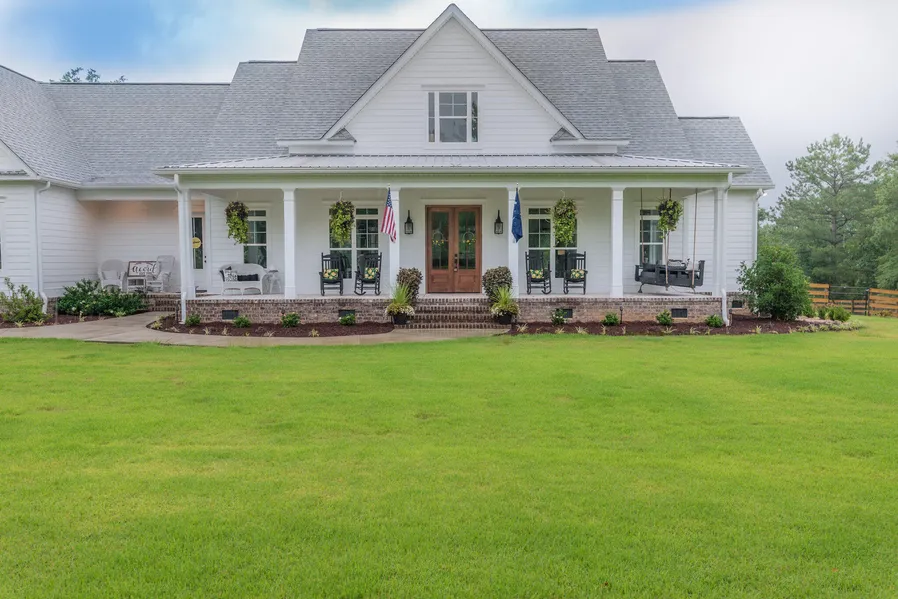 Welcome to the home of your dreams! This custom farmhouse with 5500 sf under roof, 4200 heated & cooled, 1500 sf covered porches (one screened) has everything, and all of it's like-new! Just 3 steps up to the southern, rocking chair front porch to take in the serenity of being tucked away in this private, gated community. It feels like you're in the country but you're less than 5 miles to TJ MAXX and othr retail stores and just a few more minutes to Aiken's historic and charming downtown. Entering the home you are immediately greeted by high ceilings, circular sawn black walnut floors, a beautiful coffered ceiling in the great room, and custom trim work in every room. The attention to details in this home is second to none. The desired open concept living area has beautiful natural light, views of the pool, outdoor grilling pavilion and landscaped grounds . The kitchen is fabulous with l...