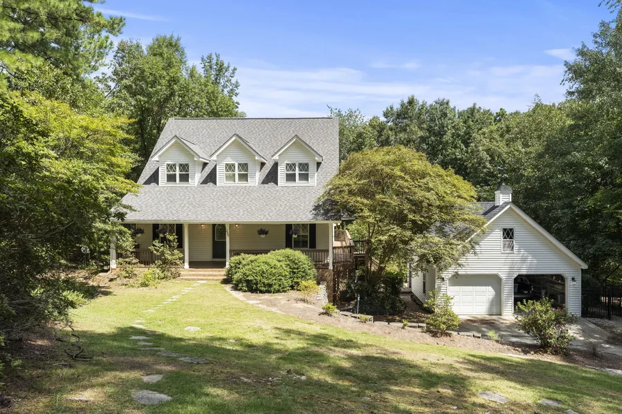 Charming cape cod situated on rolling hills behind 6th green in Cedar Creek. Wrap-around porch provides scenic view of property and newly updated saltwater POOL! This 3 bedroom 3.5 bath has plenty of space with bonus room downstairs perfect for 4th bedroom, office, or mother-in-law suite! Main floor boasts stunning cathedral ceiling and gorgeous natural light. Beautiful wood-look porcelain tile floors, fireplace, and wet bar on lower level create comfortable and classic space perfect for entertaining friends and relaxing with family. Walk out of lower level to screened-in porch with pool view. Kitchen includes granite countertops, stainless steel appliances, and easy access to laundry room! Second level features 2 spacious bedrooms with built-in bookshelves and walk-in closets. Detached two-car garage. This home is a must see! Call today!