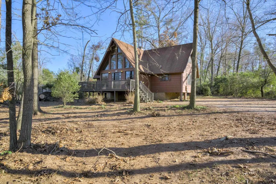 Charming A-Frame Retreat on a Wooded .74-Acre Lot!NEW SS fridge to be installed next week and will convey!Escape to nature in this beautifully updated 3-bedroom, 2-bathroom A-frame home, nestled on a serene .74-acre wooded lot, but still close to everything. With its unique architecture, fresh paint throughout, and brand-new luxury vinyl plank (LVP) flooring throughout the downstairs, this home is move-in ready and perfect for those seeking a peaceful retreat or a stylish getaway.Inside, you'll find soaring vaulted ceilings, an abundance of natural light, and an open-concept living area that blends seamlessly with the outdoors. The spacious kitchen offers ample cabinetry and an eat in kitchen. The primary suite provides a private escape on the main level, while two additional upstairs bedrooms offer flexibility for guests. There is also a loft upstairs for extra storage or a home office!...