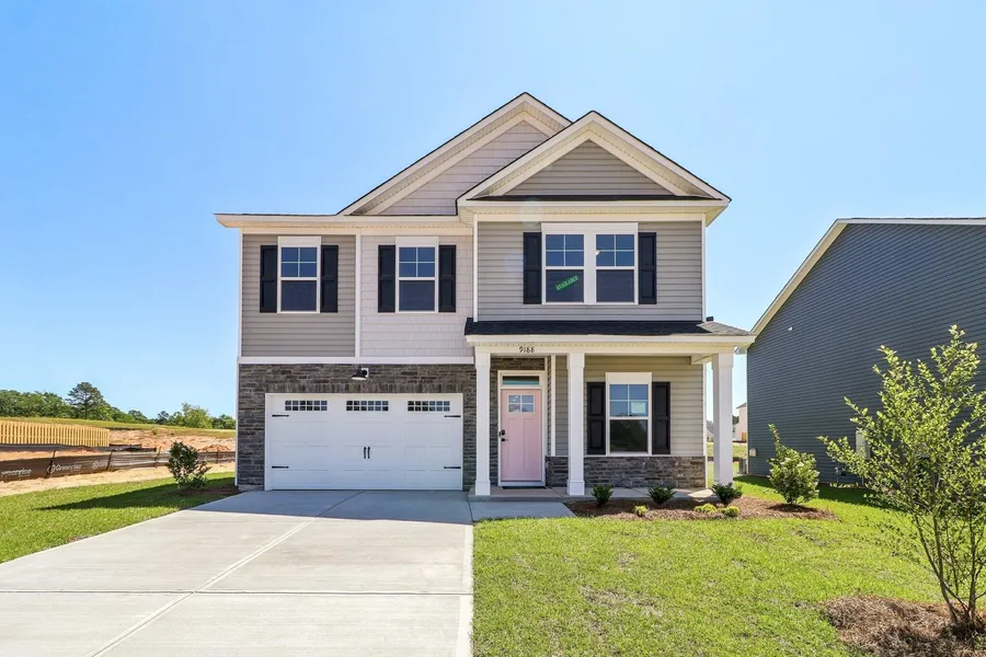 Welcome to the Benton II C, a spacious and thoughtfully designed two-story home offering 2,295 square feet of living space-perfect for families seeking both style and practicality. This inviting floor plan includes four bedrooms, three bathrooms, and an additional versatile flex room that can be used as a fifth bedroom or office, providing plenty of space for all your needs. The main level features an open layout, seamlessly connecting the living room, dining area, and kitchen-creating an expansive space ideal for both daily living and entertaining. The kitchen is equipped with a stainless steel farm sink and beautiful Argenti Gray granite countertops, adding a sleek and modern touch. A convenient full bathroom on the main level adds ease for guests. Upstairs, the generously sized owner's suite serves as a private retreat, complete with an en-suite bath and a walk-in closet. Three additional well-appointed bedrooms share a hall bathroom, completing the upper level. This home also boasts several upgraded features, including all-black fixtures, a covered porch, and more as well as appealing standards such as a Home Automation System, speaker ports in the kitchen, and GreenSmart energy-efficient elements. An electronic deadbolt offers added security and convenience. Located just off Edgefield Highway, Portrait Hills offers convenient access to Aiken Regional Hospital, major employers like Bridgestone, SRS, Fort Eisenhower, and the University of South Carolina Aiken campus. Rate buydown: 4.49% year 1 rate, 5.49% years 2-30 plus $5,000 in closing costs or $15,000 in Mad Money (can be used for option, upgrades, and closing costs) with use of Homeowners Mortgage on closings by the end of June 2025. Lot 96.