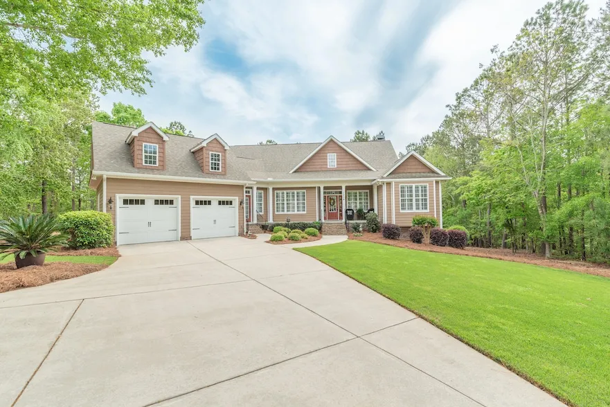 Nestled in the desirable Eden Woods community, this beautifully crafted home, built in 2008 by a reputable local builder, showcases quality construction and timeless charm. Featuring durable Hardie Plank siding & stone, this home is built to last. A long driveway leads you to a wide, welcoming rocking-chair front porch perfect for relaxing and enjoying the peaceful surroundings. Step inside to discover gleaming hardwood floors, soaring ceilings, and an open-concept layout designed for modern living. The spacious kitchen overlooks the great room and is a chef's dream with granite countertops, high-end appliances, recessed lighting, and a large center island ideal for entertainingThe main-floor owner's suite is a true retreat, featuring a large walk-in closet with built-in shelving and drawers, and a luxurious en-suite bath with an oversized shower and relaxing Jacuzzi tub. Seamless access to a private screened-in back porch perfect for quiet sunsets or a place to enjoy your morning cup of Java. The lower level features a convenient kitchen area and island that opens to an additional living space, plus a bedroom, full bath, and tons of storage space great for guests or multigenerational living. Step outside to a covered sitting area and enjoy the peaceful, private setting. Bonus: A separate two-car detached garage includes a workshop space perfect for a hobby area or future man cave. Located on Aiken's Southside, just minutes from the new Publix and all the best shopping, dining, and amenities the area has to offer.