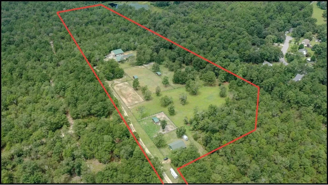Exceptional 24+ Acre Equestrian Estate with Guest House This remarkable 24+ acre property offers a rare blend of privacy, functionality, and versatility, making it ideal for equestrian living, multi-generational use, or income-producing opportunities. The property is comprised of 2 lots, use the 24 acres as a whole or easily divide part and create an entirely separate property to enjoy or sell. The main residence features 5 bedrooms and 2.5 bathrooms, with a welcoming 36-foot covered rocking chair front porch overlooking the property. The front entry opens into a wide-open living area with cathedral ceilings, tongue-and-groove pine, a brick accent wall and a wood-burning stove that defines the space. The kitchen is spacious and well-appointed with stainless steel appliances. The primary suite is bright and airy with a vaulted, beam-detailed ceiling, a large walk-in closet, and a bathroom with a walk-in shower. Additional bedrooms are generously sized, and there's a bright creative studio with an exhaust fan and separate entrance to the outdoors. A large flexible room can serve as an additional bedroom, home gym, office, or yoga studio. The home also offers an extra large walk-in pantry, storage closet, and a mud/tack room with a massive 4-door closet-perfect for saddles and gear-with direct access to the concrete wash stall. Enjoy the rear covered porch, outdoor patio, and raised garden beds surrounded by mature pines and hardwoods. Equestrian amenities include two 12' x 24' run-in sheds with 3 fully fenced pastures complete with water, a riding ring the size of a small dressage arena with an extra 30 feet of length and water (fenced on two sides), a separate 2-acre field plumbed for water (unfenced), a perimeter riding trail around the property, a concrete wash stall with drain plus hot and cold water, and a canvas shed for hay or equipment. A 36' x 48' garage/shop building with a 12' x 48' overhang creates the perfect place to park the RV and provide ample storage and workspace. The main house and shop are surrounded by no climb fencing. The fully furnished guest house features 2 bedrooms, 1 bathroom, a laundry room, and its own well, electric, and onsite sewer. It also includes a 10' x 16' powered storage shed and is fully fenced with no climb. Complete with RV parking, and it's own horse amenities with water. This guest home has served as both an Airbnb and a long-term rental, with consistent occupancy since its construction. All conveniently located just minutes from I-20 and close to downtown Aiken, this property combines serene country living with modern convenience.