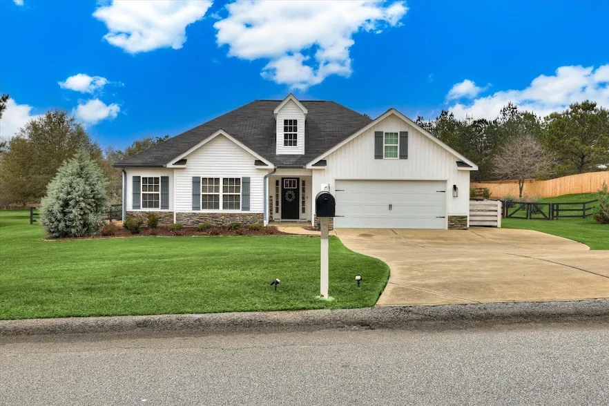 Well maintained, three bedroom, two bath on an acre in Graylyn Meadows community! Built in 2017, with many upgrades and an in ground pool!Featuring vaulted and tray ceilings, the open concept kitchen, dining and great room are perfect for entertaining and family activities. Beautiful engineered hardwood floors. The kitchen features stainless appliances, granite counters, shaker cabinets and classic white subway tile backsplash. Cooking is a dream with a gas stove and large central island with seating. The primary suite has a large walk-in closet, cozy carpet, coffered ceilings and a giant en suite bathroom with soaking garden tub and separate shower and double vanity. Two additional bedrooms share another bathroom and also feature vaulted ceilings and low maintenance LVT. Outside, the covered 10 x 19 patio overlooks the large in-ground pool that has it's own fence for added safety. An ad...