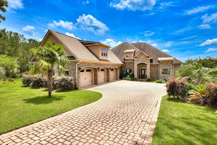 Experience luxury living at its finest in this breathtaking custom-built home with golf course & water views, perfectly positioned along the 14th fairway of the prestigious Hollow Creek Golf Course, all within the gated Reserve Club at Woodside! This handicap-accessible home features a rare 3-level elevator, soaring 10-foot ceilings and hardwood floors throughout the home! The exterior is equally impressive, boasting a 3-car garage and a custom paver driveway that enhances the home's curb appeal!
