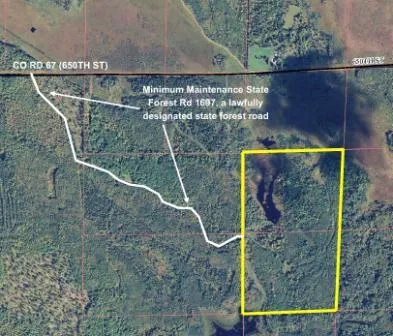 92+ acres of opportunity near Hill City. Two wetland areas create great environment for duck and goose hunting. Adjoins public land for even more hunting opportunity. Nearby Soo Line Recreational Trail and Shovel Lake Trail connect to numerous other area snowmobile/ATV trails. Near Hill Lake, Quadna Mountain, and Hill River State Forest. Access is via Minimum Maintenance State Forest Rd 1697, a lawfully designated forest road, from Co Rd 67 (650th Street).