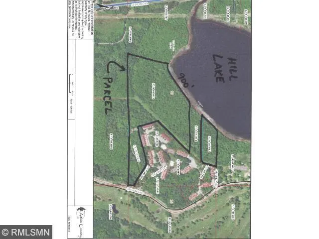 This is a wooded parcel with approximately 900' on Hill Lake and just under 27 acres. Located adjacent to the townhouses to the west, appears to be mostly higher ground with undeveloped shoreline. Access easement to be provided.