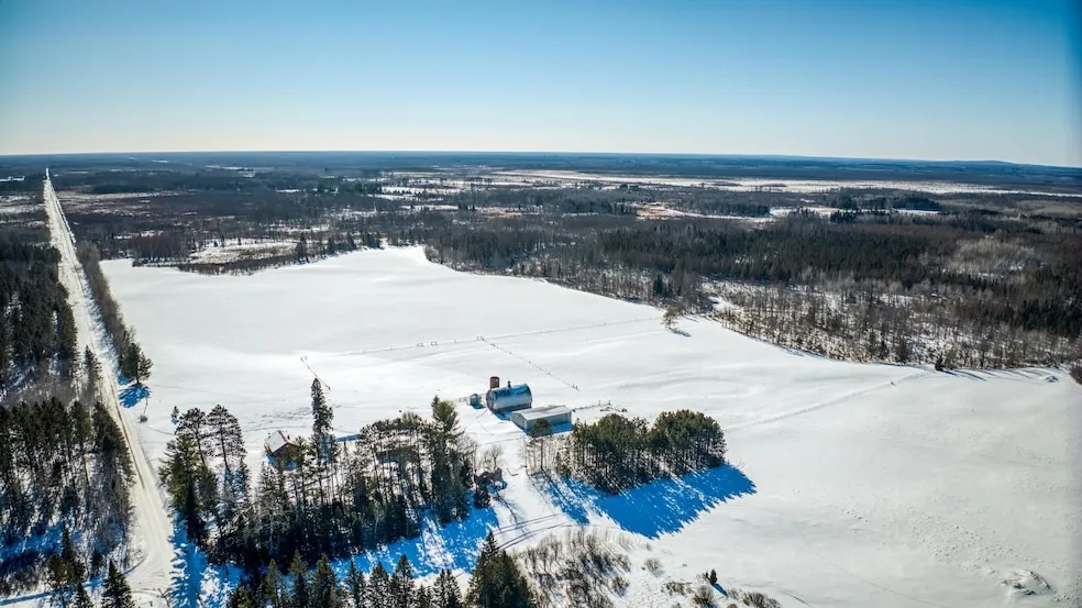 HARD TO FIND, acreage, outbuildings and a gorgeous log home that is move-in ready with many well-done upgrades! Both bathrooms completely renovated. Main floor bathroom has restored, cast claw-foot bathtub. Main lofted bedroom overlooks open concept kitchen/dining area under chalet-type vault. Modern updated kitchen with freestanding island, hand-crafted mason jar chandelier, farmhouse sink and stainless appliances including dbl oven. Three downstairs bedrooms have access to 3/4 bath. Southern exposure four-season patio along entire length of house. Home is half surrounded by wrap-around deck. Early 1900's-built round- roofed barn made of cedar inside and outside. Pole building with cement floor for machine shed, work shop or plenty of room for storage of recreational toys for use on any of the many area lakes or trails. Property is partially fenced-ready for livestock. Front field has b...