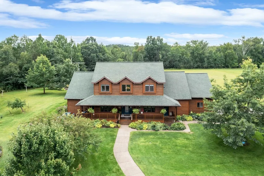 Set on nearly 50 acres of rolling land, this exceptional estate combines refined design with comfort and function. At the heart of the home, a chef s kitchen pairs custom cabinetry and quartz surfaces with double ovens, opening to a dining space framed by sweeping views. The living room invites you to gather around a floor-to-ceiling stone fireplace, flanked by custom built-ins, with natural light pouring through glass doors that connect seamlessly to the patio. The main-floor primary suite feels like a private spa with dual vanities, a tiled shower with dual heads, and a freestanding soaking tub. Upstairs, three bedrooms are thoughtfully designed with both a Jack and Jill bath and an additional ensuite. The lower level is more than an ordinary family room in a basement, it is an open space for entertaining, making memories, and spending time together. A fifth bedroom, organized craft room, and generous storage add to its function. Outdoors, enjoy a custom wood-burning sauna, hot tub, and landscaped grounds enhanced by an in-ground sprinkler system and invisible fencing. The heated 28x60 garage doubles as an entertainment space and houses a golf simulator, while the 32x48 portion of the detached garage provides exceptional storage and flexibility. There is so much more to this property than words can capture, come see it for yourself.