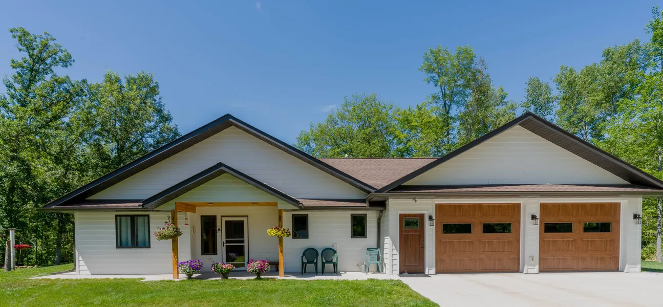 Experience the charm of this custom-built patio home nestled on eight wooded acres with approximately 300 feet of shoreline on Long Lake. Inside, the professional-grade kitchen is a culinary delight, equipped with quarter-sawn oak cabinetry by Bayer and Kitchen Aid appliances, including a 36" gas cooktop and double wall oven. A generous pantry and Corian countertops enhance the space's elegance—a personal retreat primary bedroom, boasting a deep soaking tub & walk-in closet. The guest bedroom and an office provide ample comfort for visitors. This home blends quality and functionality w/ Marvin windows, oak trim, and an oversized heated two-car garage (28x28) with 8 ft doors. Year-round comfort with a combination boiler for endless hot water and a forced air furnace w/ A/C. Water filtration system, diamond Kote LP Smart Siding, RV and generator hook-ups, and a robust security system. The property also features a 40x56 heated workshop with three 12x10 ft garage doors and a 20x24 garage.