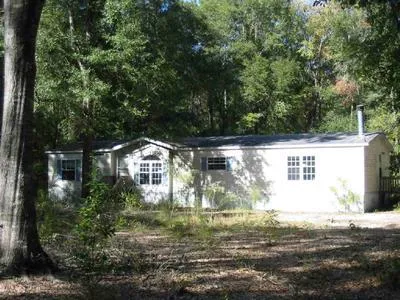 Tucked away in a forest of trees. 3BR 2BA, 1793sf Meritt Manufactured home. Fireplace in family room, large great room and laundry room. Outside utility building.