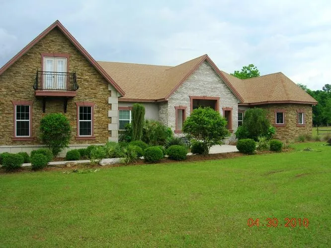 Elegant European style 4BR 4.5BA home on 6.76 acres. Stone/brick front over CB construction with rock accents. Private theater room, custom kitchen. Beautiful in-ground pool, spa, rock waterfall/fountain. Addtl 38x60 shop/office. $679,000 MLS#314694