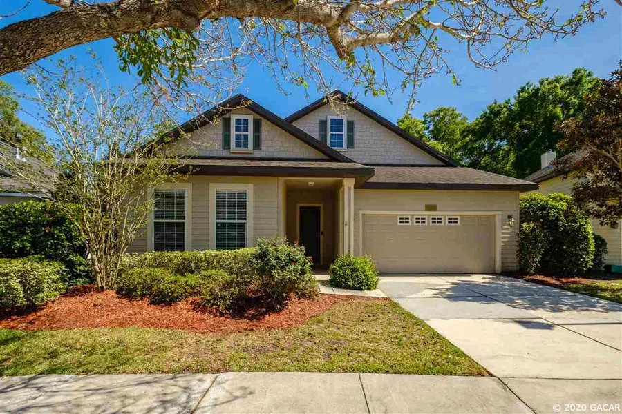 Stunning, updated 3 bedroom 2 bathroom home in Longleaf. This home is a must see! Enter the home and be welcomed by high ceilings & a formal entryway that leads to a bright and open floor plan featuring Sterling Oak vinyl flooring throughout (2018). More updates include modern light fixtures & fans(2018), beautiful GRANITE counter tops in bathrooms & kitchen(2018), new HVAC in 2017, and new furnace in 2018. The kitchen boasts white cabinets with ALL newer stainless steel appliances (2018). This two way split floor plan has a spacious master suite with large walk in closet & door that lead out to the lanai. Master bathroom features dual sinks, whirlpool tub & walk-in shower. Spacious backyard is next to a retention pond giving it an even bigger feel & backs up to wooded area for extra privacy! Longleaf is a prime location near I-75, close to Celebration Pointe, UF & UF Health. Amenities include beach entry pool, kiddie fountain, clubhouse, fitness center, playground, basetball courts, tennis courts & front yard maintenance!! To view a virtual tour of this home go to: