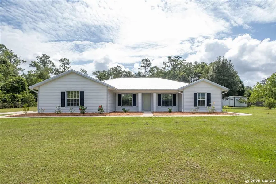 Spacious 2118 sqft concrete block 3 bedroom, 2 bath + Study home with 3.69 acres in Gainesville. Perfectly situated for peace and quiet, located near Newmans lake, Bluefield Estate Winery while still offering a quick commute to UF, Shands and VA. The property is packed with features including a new metal roof, 18x21 carport, 12x20 Lark Storage shed, basketball court, paver patio, large screened porch, 3 sources of water on the property, lemon tree, loquat tree and nectarine tree. Inside the home you will find a spacious floor plan with tile flooring throughout, a study that would be very easy to turn into a 4th bedroom, inside laundry and 2 car garage. The owners suite is very spacious with walk-in closet and large vanity. This home has so much to offer. Check out the 3D tour https://bit.ly/2X8kYBa.