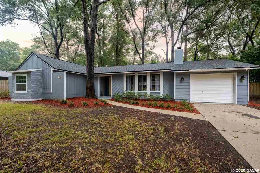 Completely Remodeled 3 bed, 2 bath home in desirable SW Gainesville community. Upon entering the home the bright spacious open floor plan welcomes you. In the family room there are three large windows, a wood burning fireplace, vaulted ceilings, wood laminate floors throughout the home, and a dining room. Upon entering the kitchen the New Quartz countertops are breathtaking, SS appliances and wood cabinets. Near the kitchen you will find your garage and laundry room with a window. Down the hall you will find 2 guest bedrooms and a completely remodeled guest bathroom. Then you walk into the owner's suite with custom closet shelving, tray ceilings with intricate wood details, a reading nook in the bay window, then a barn door heading to the brand new master bathroom with two separate vanities, walk in shower with beautifully designed tile and plenty of natural light from the window. Outsid...